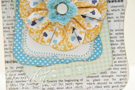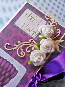Autorką dzisiejszej pracy jest Viol, która przygotowała kartkę urodzinową dla 92 letniej Pani z papierów Hectic Eclectic Rapakivi. Kolekcja ta idealnie pasuje do tego typu prezentów ponieważ jest bardzo elegancka. Oto efekty:
