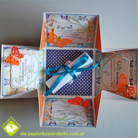 Z papierów Rapakivi powstało optymistyczne pudełko - exploding box, idealne jako opakowanie na prezent dla osoby, której życzymy jak najlepiej.